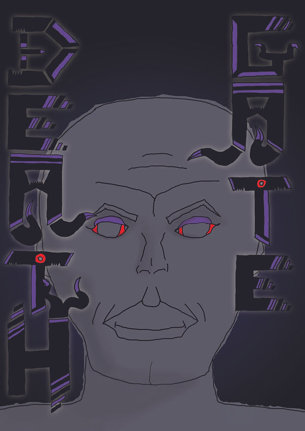 My poster started of in my sketch book along with other ideas of a poster, i chosen my poster because it represents the main evil boss and fits well with the title "Death Gate" before i put my drawn poster into "Photoshop" i had to scan it into my area, i then opened it into photoshop, draw the outlines around everything, coloured everything, added shading to the character and added a glow around the text to make it stand out from the background because the problem was that it was blending into the background but i need my background because im trying to keep dark colours and the main colours of my game will be purple, red and black, my background was a gradient of purple and black. I made a change to the letter "D" by giving it a new design because it looked too black at first and at the bottom of the letters "A" i got rid of the tentacles because i thought it was too much.
