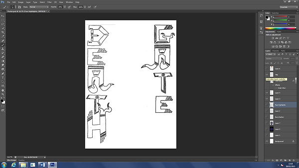 I started by hiding the rest of the work that i have just explained above, i then open my "Death Gate" text that i created in a sketchbook, then scanned into a computer then put onto "Adobe Photoshop" so that i could work with it.